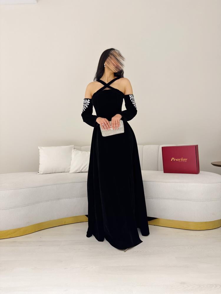 إذا كنتِ تبحثين عن إطلالة تجمع بين الأناقة الكلاسيكية والفخامة العصرية، فهذا الفستان الأسود القطيفه هو الخيار الأمثل لكِ. بتصميمه الفاخر والمميز، يضفي عليكِ لمسة من التألق والأنوثة في كل مناسبة